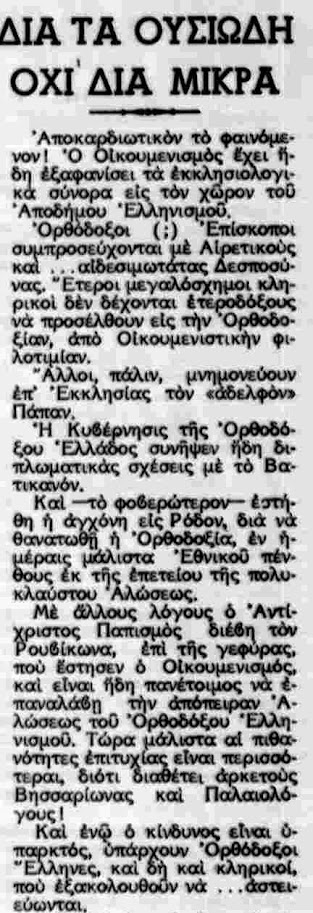 (Άρθρο δημοσιευθέν στην εφημερίδα "Εκκλησιαστικός Αγών" - Ιούνιος 1980)